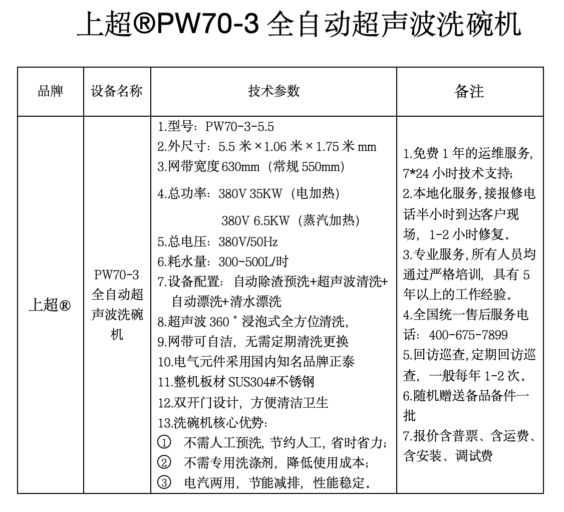 咨詢:PW70-3全自動超聲波洗碗機